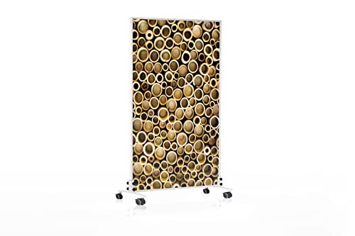 Könighaus stående infravärme med motiv – 450 Watt – sparar energi = värmer inom 2 minuter – med ståfötter och termostat – stående flyttbar infravärmare – snyggt motiv: Bambustav