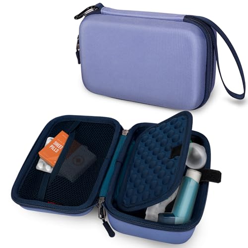 MEDMAX Hårt Astma-inhalatorfodral, stötsäkert diabetiskt fodral med klämma och handtag, skyddande medicinskt resefodral för Astma inhalator,, Lavendel lila, mode
