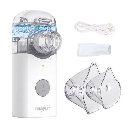 EUROPAPA Bärbar inhalator, inhalationsapparat nebulisatorset med munstycke och mask för barn och vuxna, mycket tyst, USB-uppladdningsbar eller batteridriven