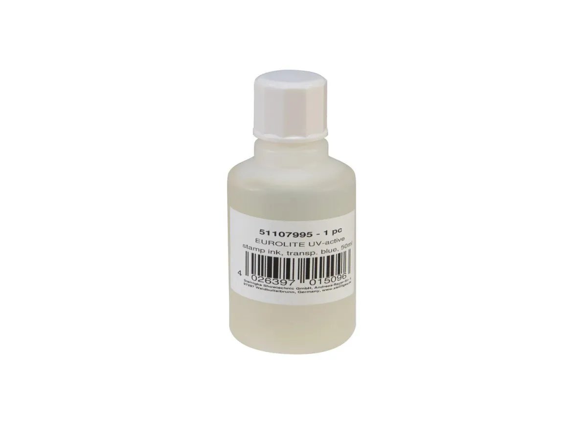 EUROLITE UV-active Stamp Ink, transparent blue, 50ml, Eurolite UV-aktiv stämpelbläck, transparent blå, 50 ml