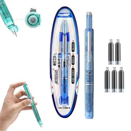 Retractable Fountain Pen,0.38mm Medium Nib,Transparent Barrel,Smooth Writing No Leaking,Includes 5 Refillable Ink Cartridges,Erasable,for Office School Journaling (D-Black)