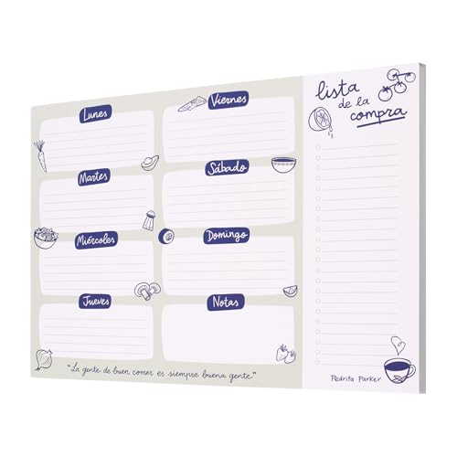 Miquelrius - Daglig måltidsplanerare för att förbättra dina vanor, Odaterad daglig planerare, inklusive inköpslista, 80 ark på 80 g/m², dubbel gyllene spiral, elfenbenspapper, fodrat kartonglock
