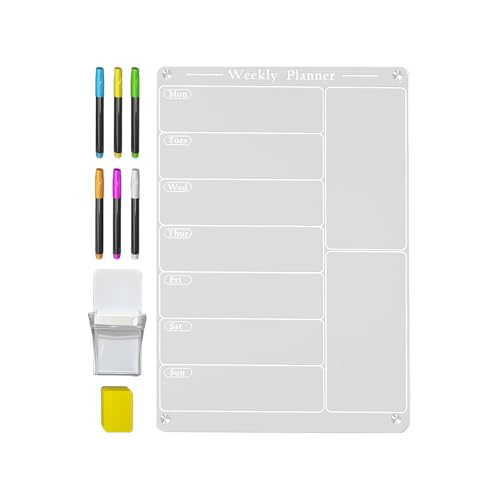 Veckoplanerare för kylskåp – magnetisk planerare – återanvändbar akrylbräda set med pennhållare 6 överstrykningspennor för inköpslista restaurang levande familj män kvinnor