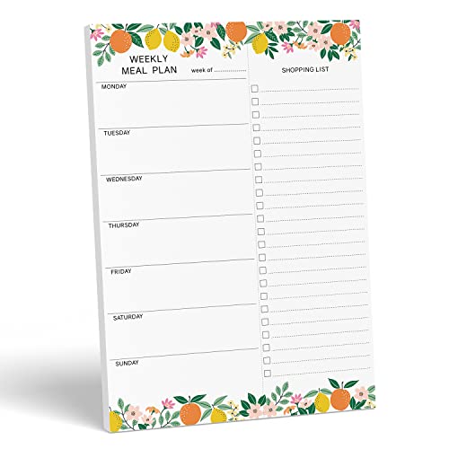 Magnetiskt anteckningsblock för sötningsmedel och apelsinfruktig veckoplanerare med inköpslista 7 x 10 tum måltidsplaneringsplatta