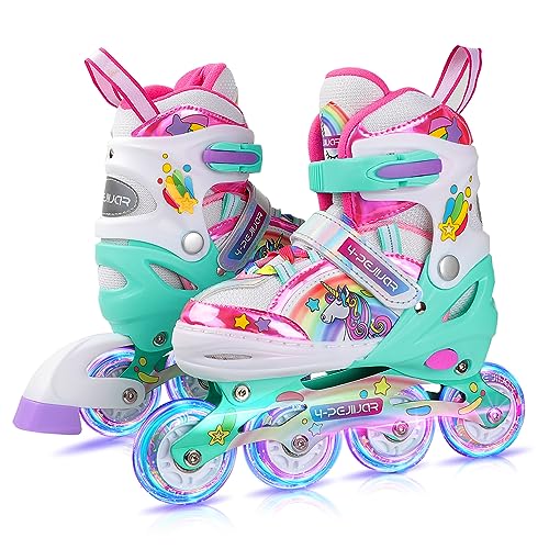 Unicorn inlines för flickor, barn, storlekar justerbara med alla ljusa hjul, rainbow inlines för nybörjare, tonåringar, jul- och födelsedagspresenter (Rosa, XS(26~29))