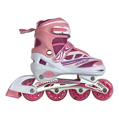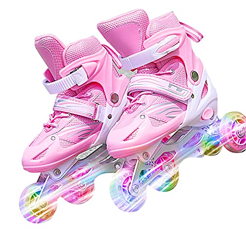 Tante Tina Inliner för barn – barn Inlines justerbar med lysande hjul – barninlines rullskridskor storlek justerbar i 4 storlekar – rosa M (33–37