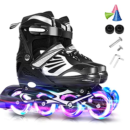 TOMSHOO Inliner, rullskor, inlines, rullskridskor med 4 storlekar, justerbara, LED-hjul, flera storleksalternativ, inline-skridskor för barn, vuxna, pojkar, flickor