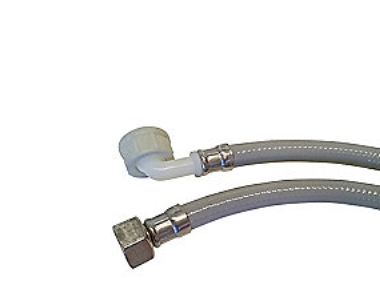 Inloppsslang 3/8" -3/8" 150cm Vinklad, Armerad, rostfri, konisk koppling