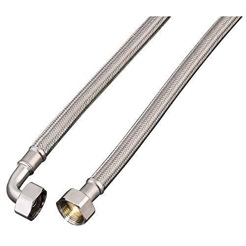 Inloppsslang 3/8"-1/2" 685mm Vinklad, Armerad, rostfri, vinklad, platt koppling