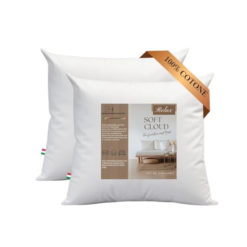 GM Soft Cloud Soffkudde, set om 2, 40 x 40, multifunktionell kudde, 2-delad dekorativ innerkudde med allergivänlig fiberfyllning fodrad med 100 % färskt bomullstyg - Tillverkad i Italien