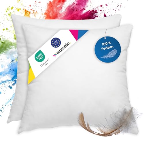 wometo Uppsättning av 2 fjäderkuddar 100 % fjädrar 50 x 50 – 600 g oekoTex kuddar fyllningskuddar bomull vit/innerkudde/små kuddar (2 stycken)