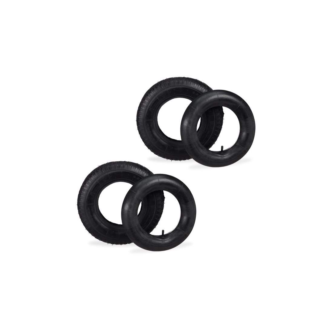 Relaxdays Slang 4,00-8, set om 4, reservslang, skottkärra och vagn, innerslang, bilventil, gummi, svart
