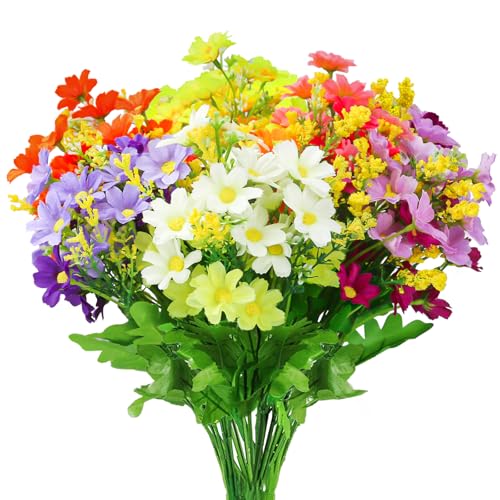OWLKELA Konstgjorda tusenskönor i silke, 6 paket med 6 färger falska blommor för utomhus och inomhus, dekorativa konstgjorda blommor i vas, konstgjord plast UV-resistenta blommor för gravar och