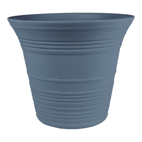 The HC Companies 23 cm Sedona rund självvattnande planterare – dekorativ lätt plastväxtkruka för inomhus utomhusväxter blommor örter, skifferblå