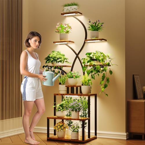 Bvewg 152 cm växtstativ i metall inomhus med växtlampor, blomma spikformad hög växthylla för inomhusväxter, 9 nivåer upplysta växtstativ för inomhusväxter flera
