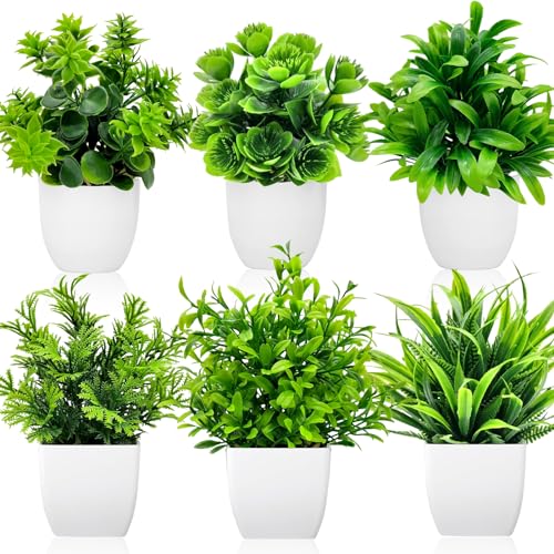 YEJIKJ 6 stycken konstgjorda växter inomhus liten kruka inomhus växt konstgjorda blommor, perfekt för skrivbordsdekoration, heminredning, sovrumsinredning, badrumsinredning
