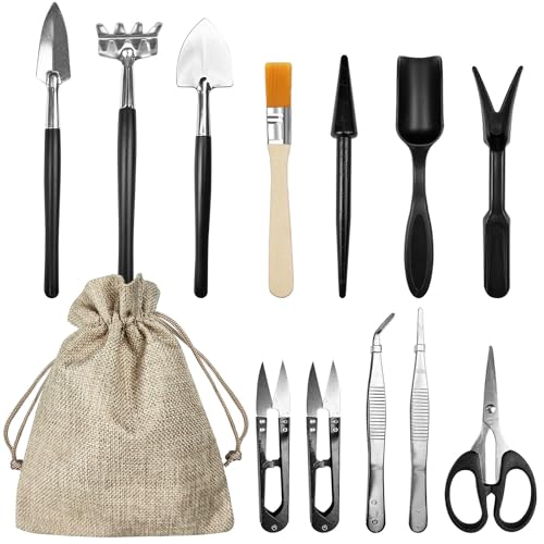 13 stycken trädgårdsverktygsset, trädgårdsverktyg med förvaringspåse, bonsai verktyg, bonsai tillbehör, bonsai verktygsset lämplig för inomhus- och utomhusbruk blommor trädgård grönsaker växter