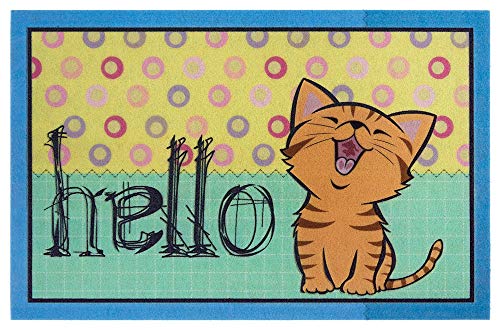 Hanse Home Tryckt dörrmatta flockad 3D-utseende med halkfri PVC-golv smutsfångande matta dörrmatta smutssamlare entrématta, inomhus och utomhus olika motiv 45 x 70 cm, färg: Hello katt