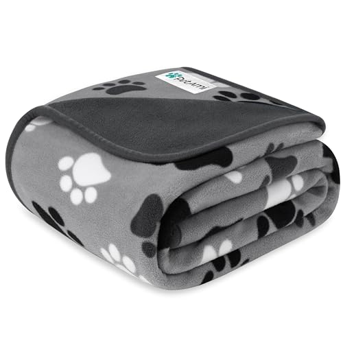 PetAmi Vattentät fleece hundfilt, husdjursfilt små medelstora hundar, mikrofiber överkast säng soffskydd inomhus katt valp kattunge, vändbar varm mjuk plysch luddig, stor 40 x 60 tass tryck grå