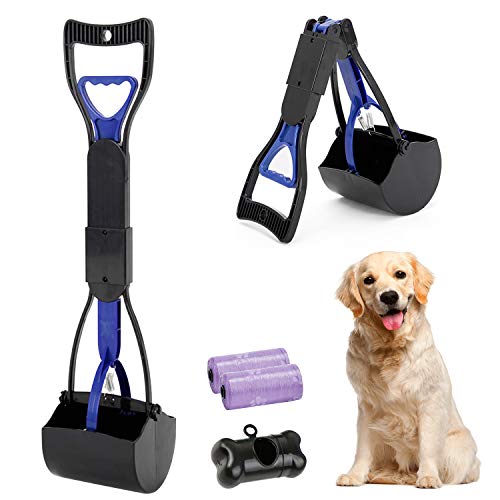 HyAdierTech Hundbajsplockare med långt handtag, 61 cm (24 tum), vikbar, bärbar, med solida tänder, plockar upp ditt husdjurs avföring utomhus/inomhus, perfekt för katt- och hundbajs (blå)