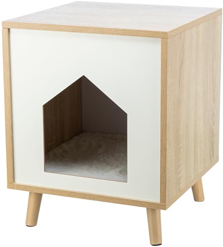 TRIXIE Isa inomhus katt lägenhet, modern kattsäng sidobord och nattduksbord, katt gömställe grotta med mysig kudde