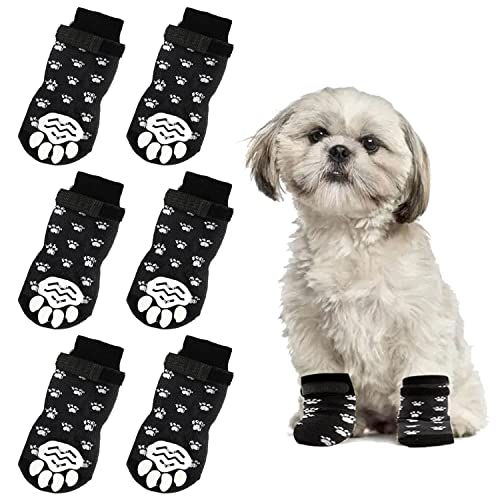 3 par inomhus halkfria strumpor för hundar, hund katt tass skydd med gummiförstärkning, dragkontroll för inomhusbruk på hårda trägolv S