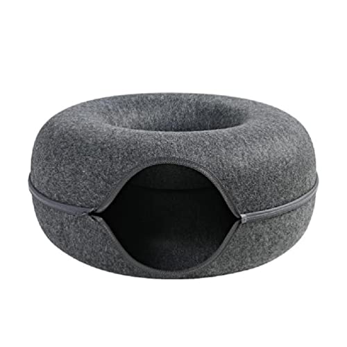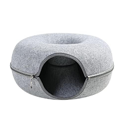 För katt tunnelsäng 2-i-1 rörhus för kaniner kattunge som leker gömd avtagbar mjuk filt för kattleksak inomhus gömställe katt tunnel säng filt tub för inomhus katter tunnelsäng för katter rund filt
