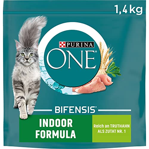 Purina ONE BIFENSIS Inomhus formel katt torrfoder: rik på kalkon och fullkornsspannmål, fiberrik mat för bostadskatter