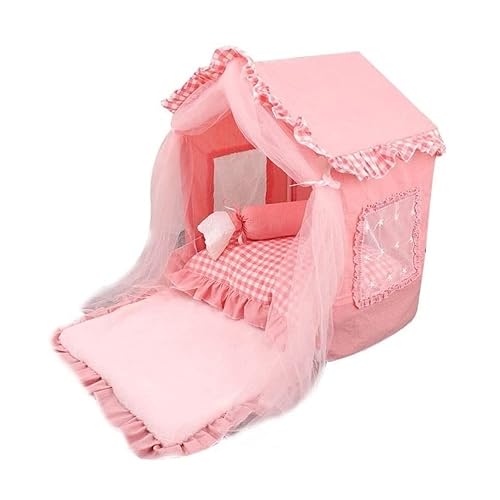 Hundsäng för Hundar och Katter Lyx Hundvalp Prinsessa Tältsäng Hus För Tvättbar Sommar Husdjur Katt Inomhus Säng Kennel Matta Kudde För Liten Medelstor Hund För Söt Sömn ( Color : Rosa , Size : 45*35*
