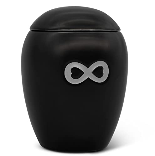 FeinKnick Snygg urna 500 ml för hund, katt och små djur inomhus och utomhus - djururna gjord av högkvalitativ keramik i svart för små husdjur som katter, hundar, gnagare, smådjur, fågel - husdjursurna