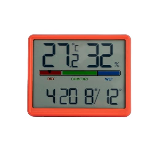GIFTMARKET - Digital inomhustermometer med hygrometer, komfortindikator, klocka och kalender, röd färg, idealisk för hemmet, ABS-material, mått 9,3 x 7,2 x 1,6 cm