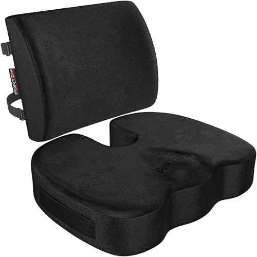 FORTEM Sittdyna och Ryggstöd för Kontorsstol, Ländryggsstöd, Sittdyna i Memory Foam, Halkfritt Sitt- och Ryggstöd för Gaming, Sittkudde för Bilstol, Datorstolsdyna, XL