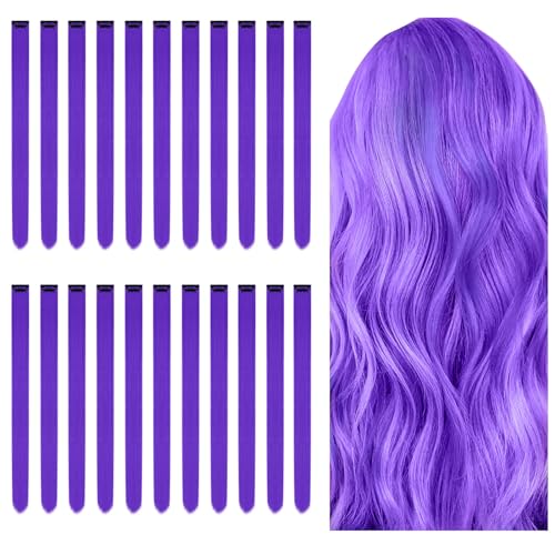 Aomig 22pcs Lila HåRföRläNgning, 20 Tums Lila LåNgt Rakt HåR Peruk FöR Barn, Flickor, Kvinnor, RegnbåGsfest-Frisyr, HåRföRläNgningar Clip Party HöJdpunkter TillbehöR FöR Fest HåR Inredning