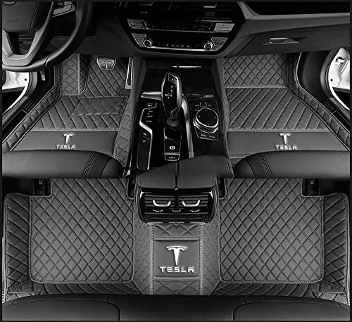 SERTUV Bil Läder Golvmattor Anpassade, för Tesla Model S 2015-2022 2023 Full täckning Allvädersskydd Mattor Inredning Tillbehör, Svart stil