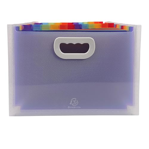 Exacompta - Ref 55198E - 1 expanderbar väska med handtag - lock och inredning i PP - med 2 etiketthållare på framsidan - 24 fack - storlek 33x23,5x25 cm - kristallfärgad
