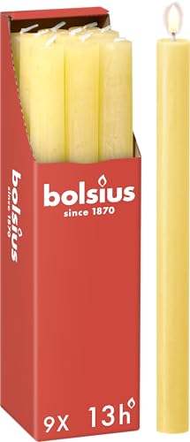 Bolsius - Avsmalnande ljuspelare – Stakljus Rustikt - Ljusgul – 9-pack – Lång Brinntid På 13 Timmar – Hushållsljus – Inredning – Oparfymerad – Naturligt Veganskt Vax – 270 x 23 mm