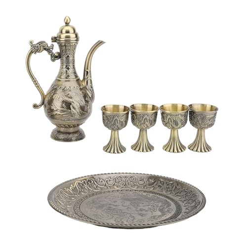 Turkiskt Teservis Vintage Elegance Metallmaterial 4 Koppar med Tekanna och Bricka Praktiskt Set Mångsidig Placering Inredning för Hemmet (Brons)