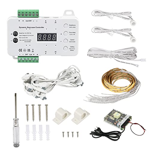 Trappbelysning med rörelsesensor, LED-trappstegs ljusstyrning, intelligent sensorstyrning, för hotell och center, hem, inredning (vitt ljus, dynamisk styrning utan fjärrkontroll)