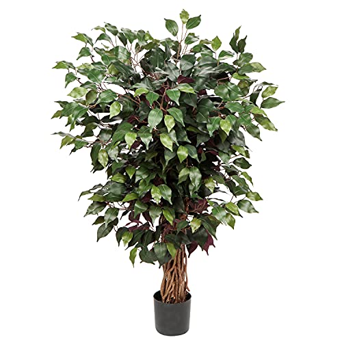Konstgjorda växter stor konstgjord växt Benjamini Ficus konstgjort träd kontor inredning sovrum deco matsal inredning röd grön 105 cm