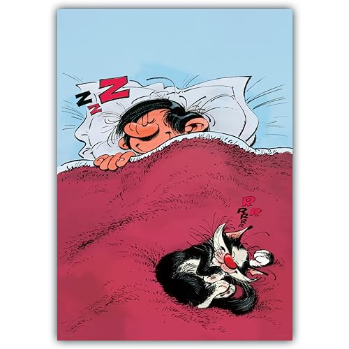 Väggaffisch 49 x 69 cm GASTON LAGAFFE sovande dröm zzz säng katt affisch att rama in signerad Franquin inredning dekoration sovrum födelsedagspresent idé jul AF1607004