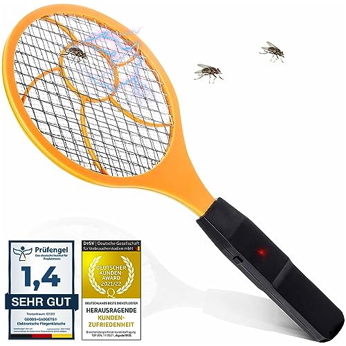 kwmobile Elektrisk flugsmällare – elektrisk racket dödar myggor – liten svart racket – insektsdödare med handtag