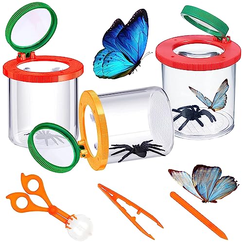 SZQIUNUBI Insektsförstoringsbox 3 delar insektsfångare set förstorande insektsbehållare insektsbehållare insektsvisare för barn för utomhus naturutforskning och observera insekter