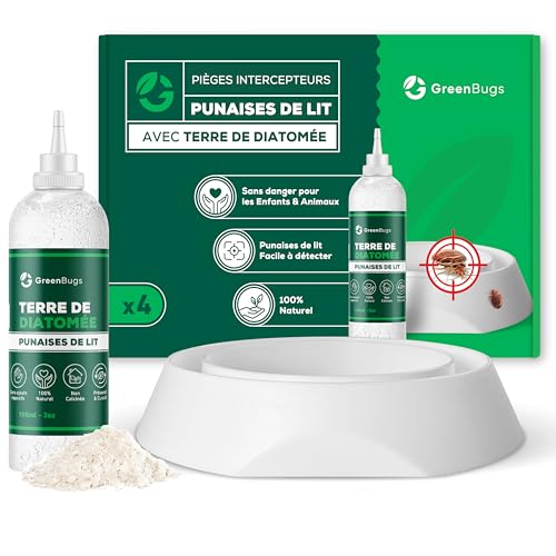 GREENBUGS Fälla vägglöss (x4) med 100 % ekologisk kiselgur - anti-insektsfångare kit för sängben - effektiv lösning - ingår bruksanvisningar