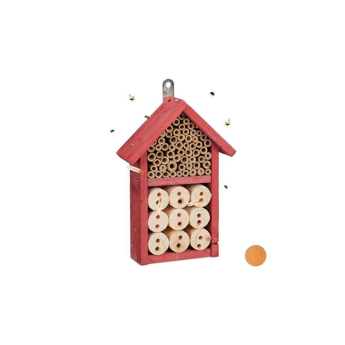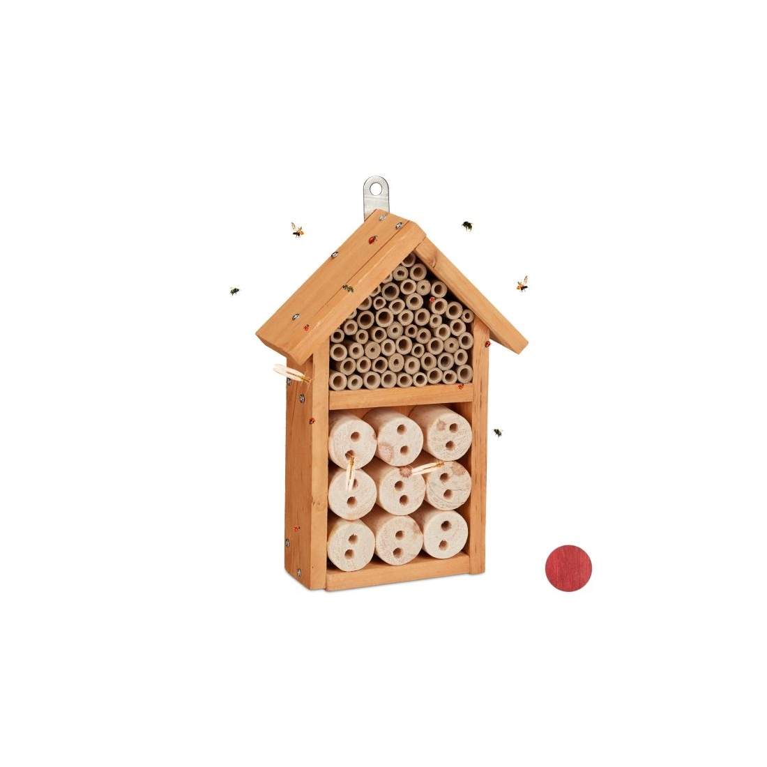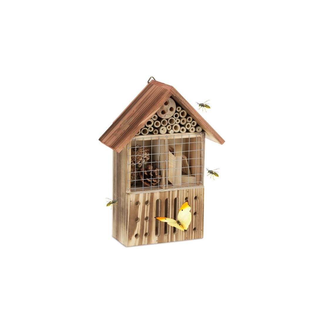 Relaxdays Hängande insektshotell, Bee Home, fjärilshus, flammigt trä, H x B x D: 31 x 30,5 x 9,5 cm, naturbrun