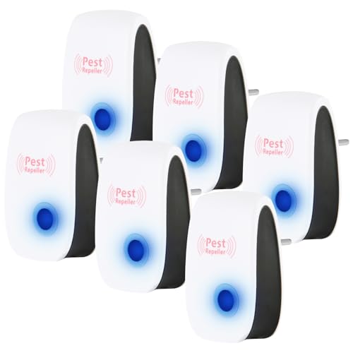 AOOWU Myggskydd Ultraljud, 6-Pack Mouse Repeller Ultrasonic & Pest Control Repeller, Elektroniskt Insektsmedel för Möss, Myggor, Flugor, Spindlar, Kackerlackor