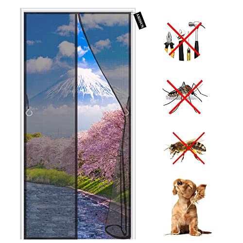 ARCOL Magnetiskt myggnät för dörr - insektsnät med sidoöppning för dörrar med handtag - magnetiska myggnät för dörrar fönster med enkel kraftfull magnet (95x205 cm, svart)