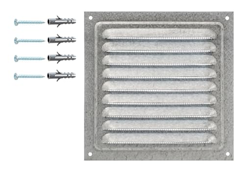 Vent Systems 400 x 400 mm ventilationsgaller – skydd av galvaniserat stål – metall luftruckgaller med insektsnät – ventilationsgaller för vägg och tak – inomhus- och utomhusbruk – frånluftsgaller