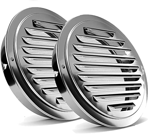 WOOLUCK® 2 stycken ventilationsgaller 100 mm rostfritt stål, runt frånluftsgaller, ventilationsenhet, tilluft, frånluft med insektsnät för garage, kök, badrum, vägg, lufthuva