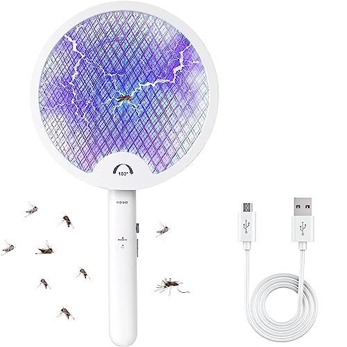 Flintronic Insektsracket, uppladdningsbar USB-uppladdningsbar 3 000 V vikbar elektrisk myggracket med 3 lager nätskydd och LED-nattljus, 3-i-1 elektrisk flugmatta