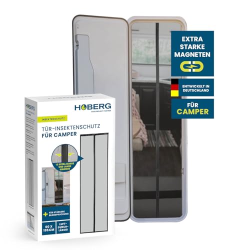 Hoberg Insektsskyddsgardin för campingvagn 60 x 195 cm | insektsnät dörr med XXL-magnetband | insektsskydd dörr för husvagnar | magnetiskt myggnät | självstängande
